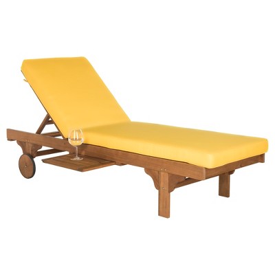 View Safavieh Newport Chaise Lounge Chair With Side Table Pics. Crafted with beige fabric and natural finish on eucalyptus wood with back wheels for easy mobility, and a sliding table for your. With its fabric and teak brown finish on eucalyptus wood, carved front legs and back wheels for easy mobility, it's like dreaming of a real vacation in your.